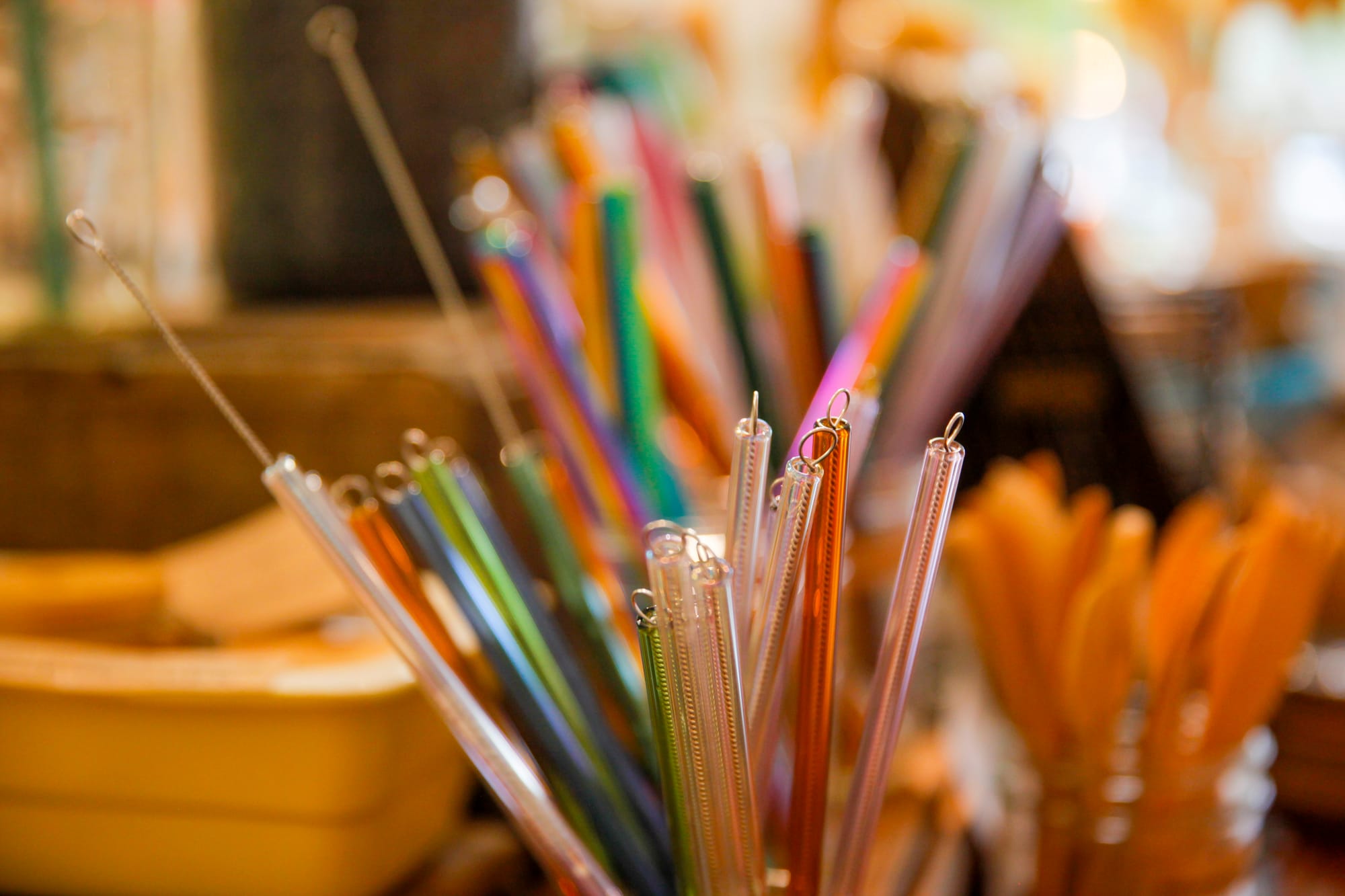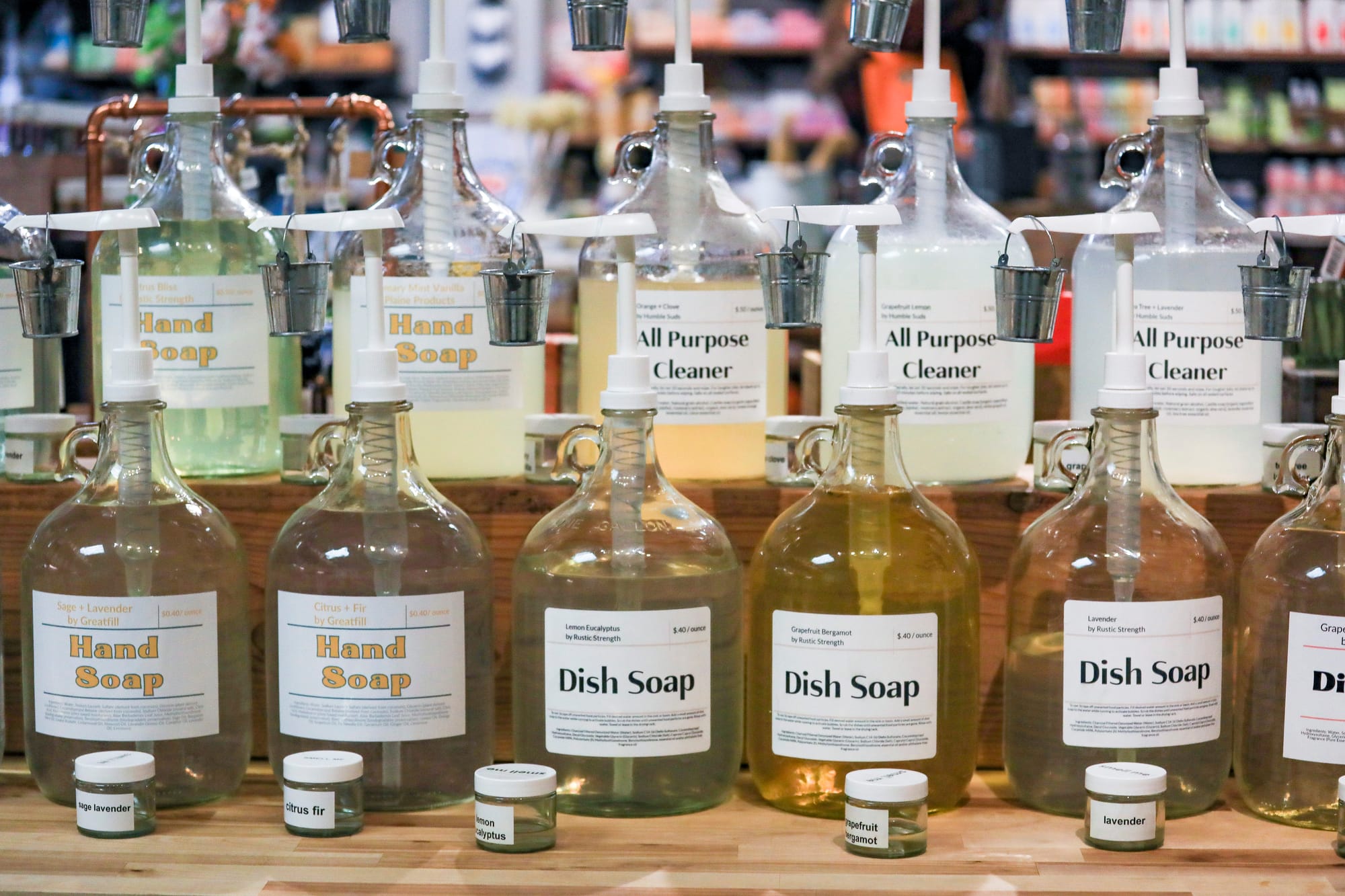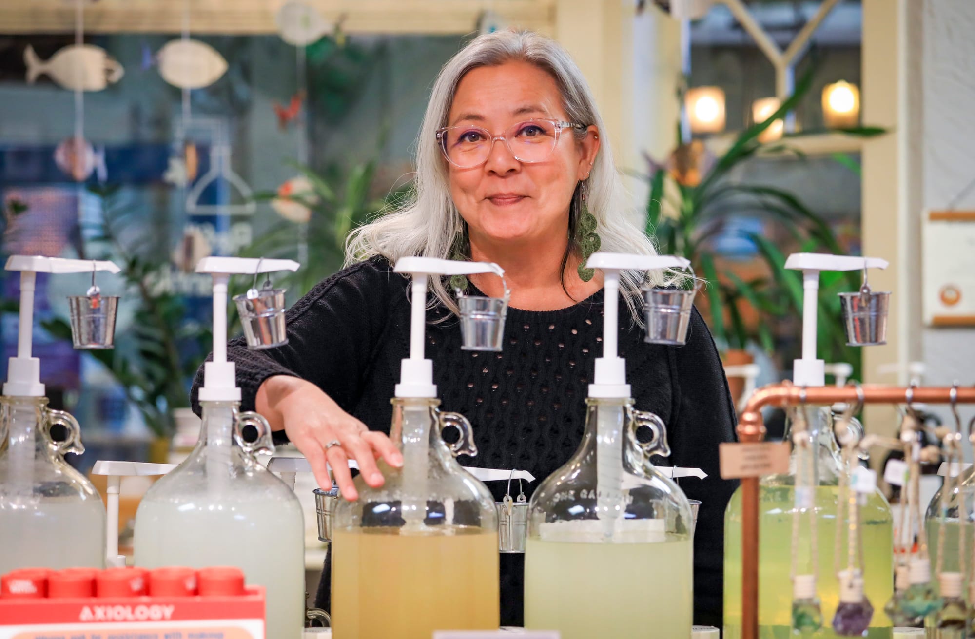 Customers can find sustainable products like reusable metal straws (top right photo) and are encouraged to bring in their used containers to be refilled with anything from laundry detergent to sunscreen. (CRISSY PASCUAL/PETALUMA VOICE ©2026)