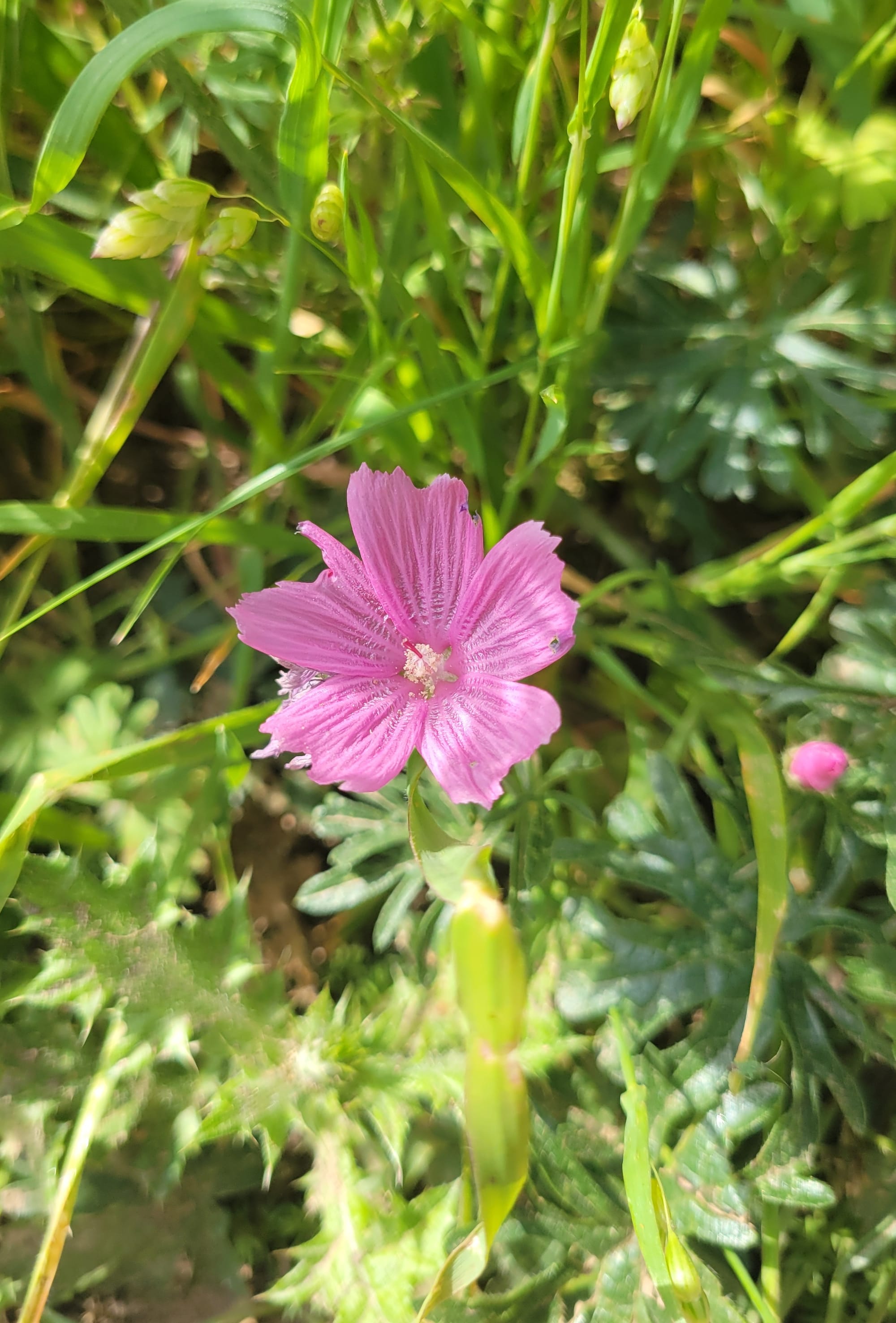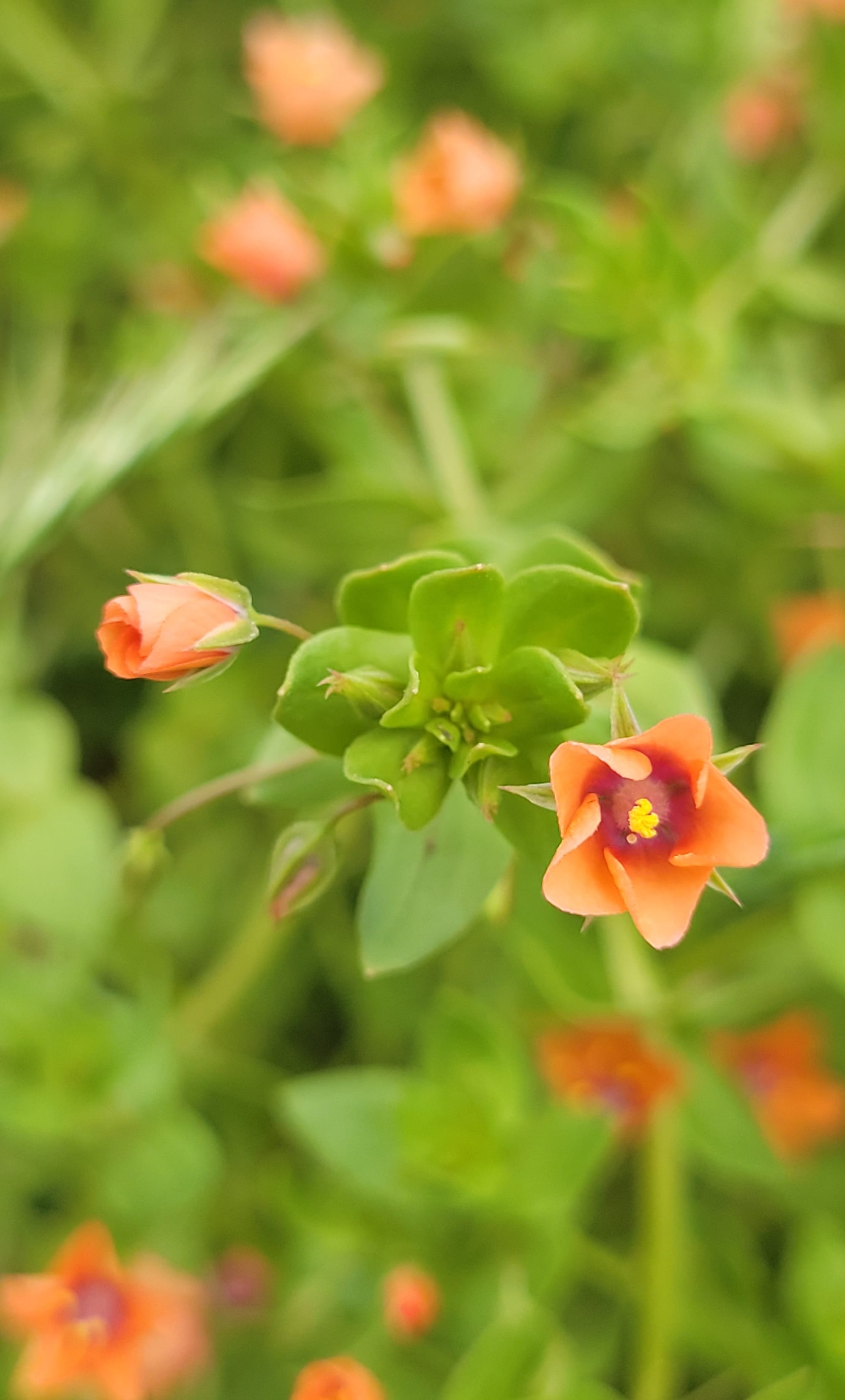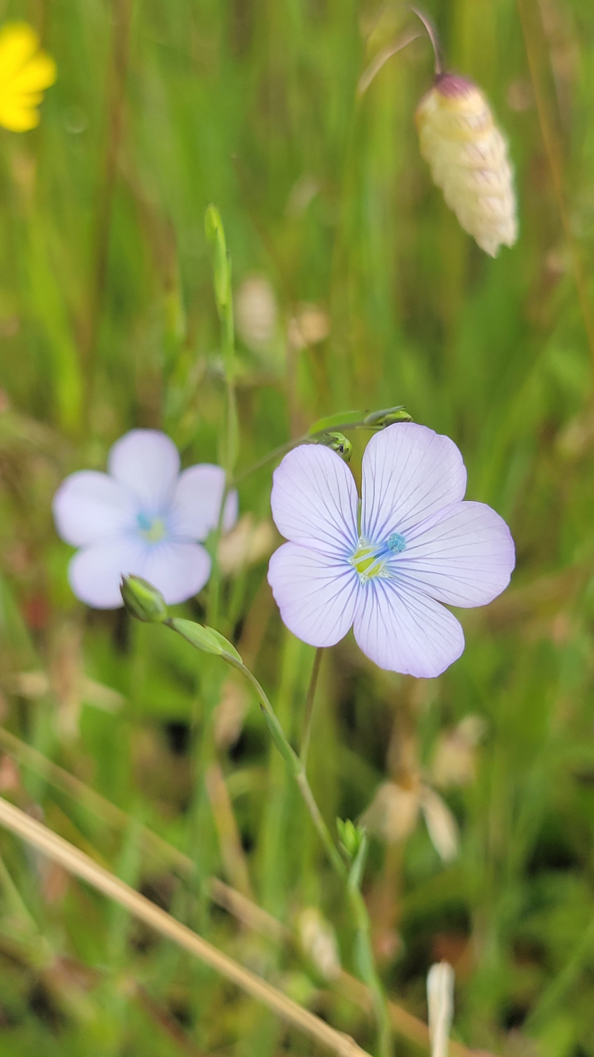 Pale flax, scarlet pimpernel, rose clover: these I had to look up. Also cheerful in their own way, also not native. [See slideshow at bottom for photos.]
