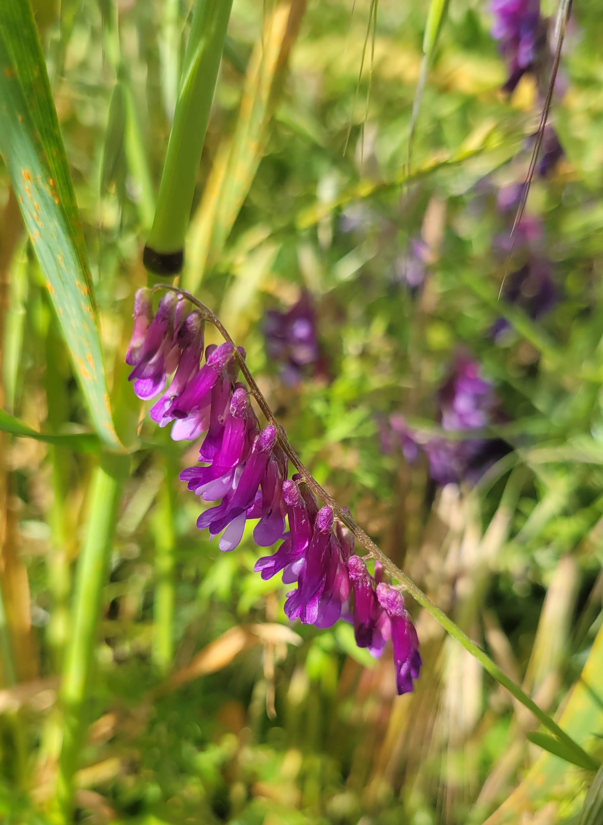 What I found surprised me. Starting on Oxford Court, I made my way up the paved path, photographing each type of flower I saw. Hairy vetch (purple), lesser hawkbit (yellow), wild radish (white): they were pretty, but not native.