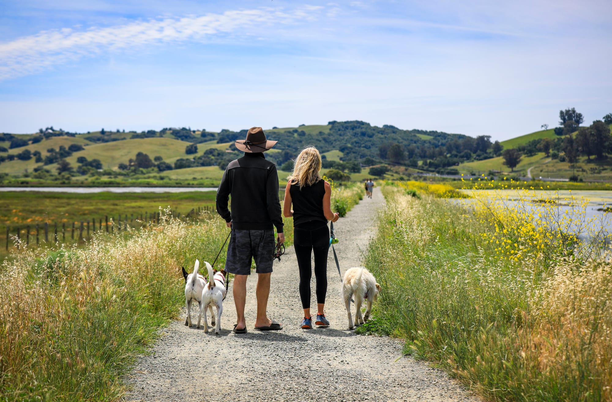 The scenic, levee-top loop trail at Shollenberger Park attracts runners, walkers, and bicyclists from across Petaluma. (Sunday, April 19, 2026. CRISSY PASCUAL/PETALUMA VOICE ©2026)