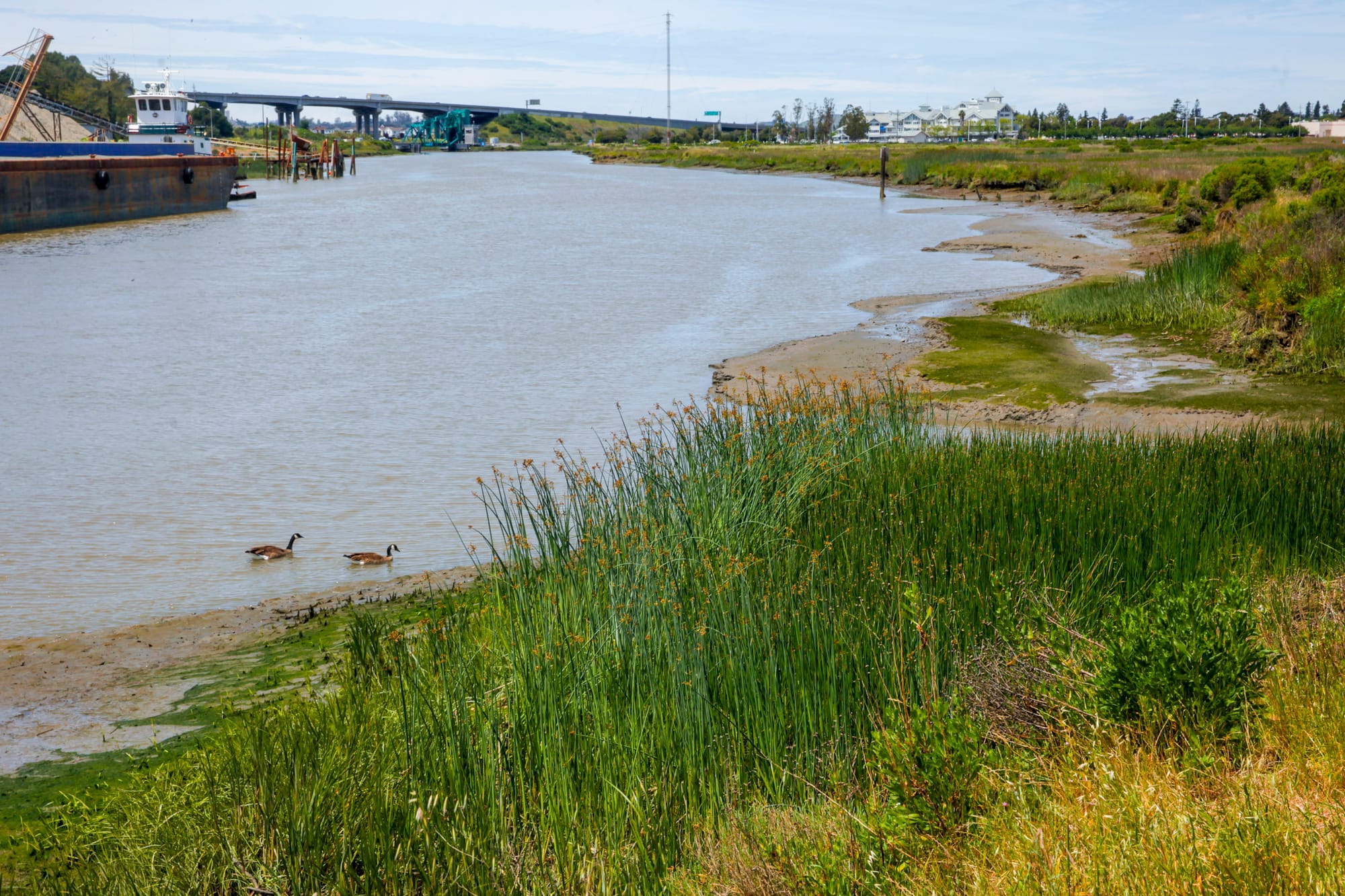 Although Shollenberger contains a seasonal wetland that attracts resident and migratory birds, it is not a functional tidal marsh. Ringed and disconnected from the Petaluma River by an earthen levee, the park was constructed and continues to function primarily as a disposal site for mud dredged from the river.