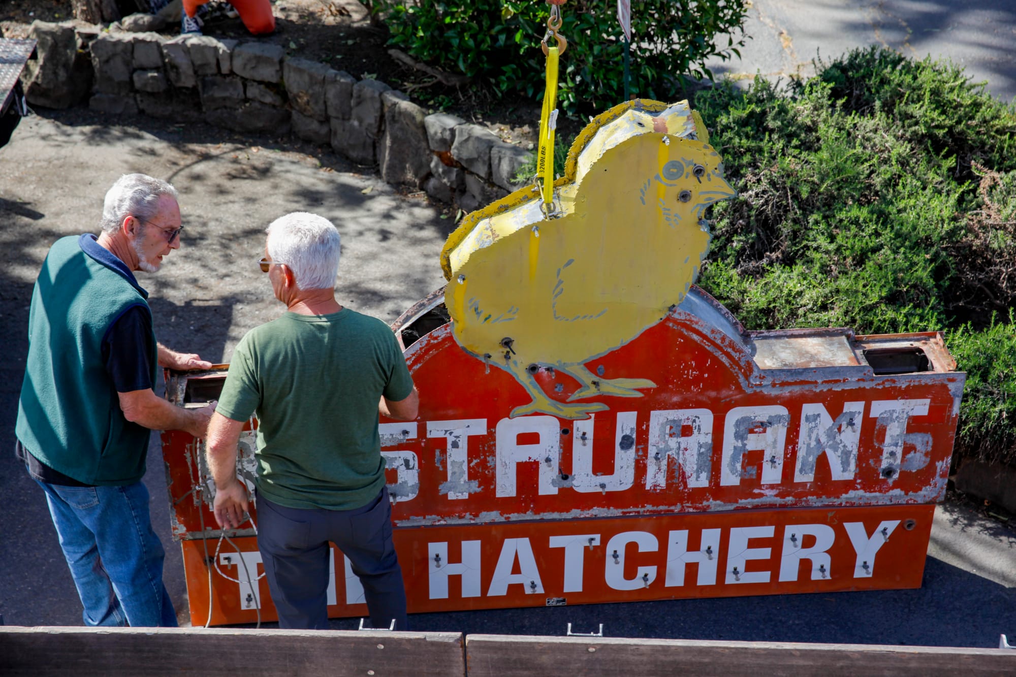 Watch the neon chick sign get placed on a flatbed truck and prepared to be hauled away to undergo its restoration. The sign will return in a few weeks. Video by CRISSY PASCUAL/PETALUMA VOICE ©2026